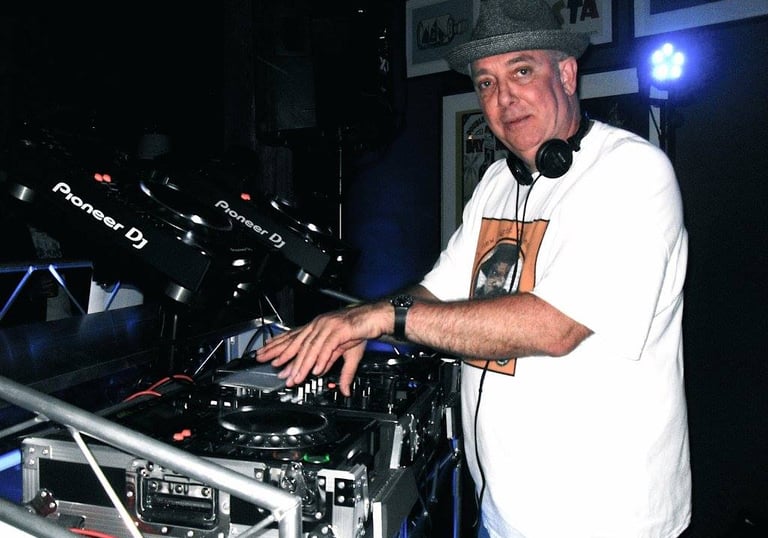 Pete's musical journey began in the late 1970s, inspired by Funk, Disco, Soul, Reggae, and Jazz—genres that fueled his passion for vinyl and shaped his DJ style. His first residency was at Christies in South London, where he shared the decks with Gilles Peterson, sparking a career that’s taken him from underground South London parties with Carl Cox to long-running residencies with Kev Beadle and Mick Farrer’s Soul Cruisin’ boats on the River Thames.